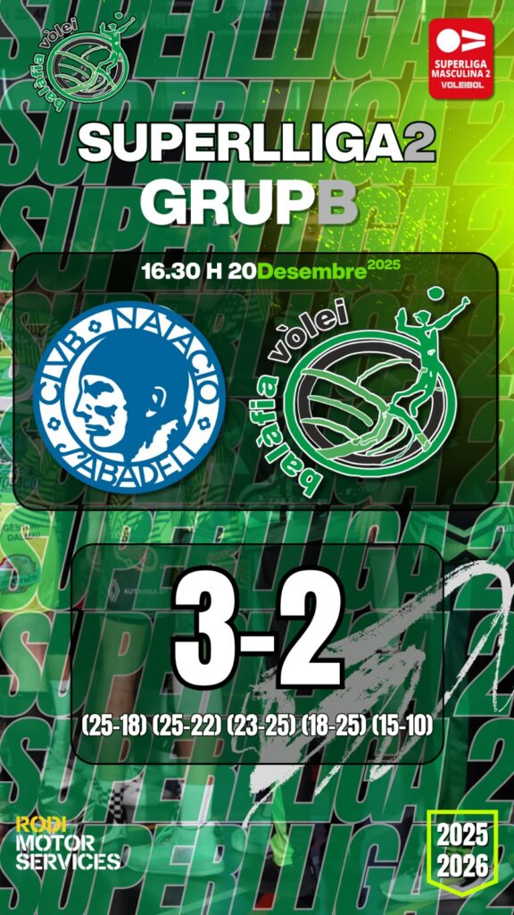 El RODI BALÀFIA VÒLEI ha aconseguit puntuar a la difícil pista del CN Sabadell. Malgrat no poder culminar la remuntada -perdia 2-0-, els lleidatans han forçat el cinque set i han sumat un punt.